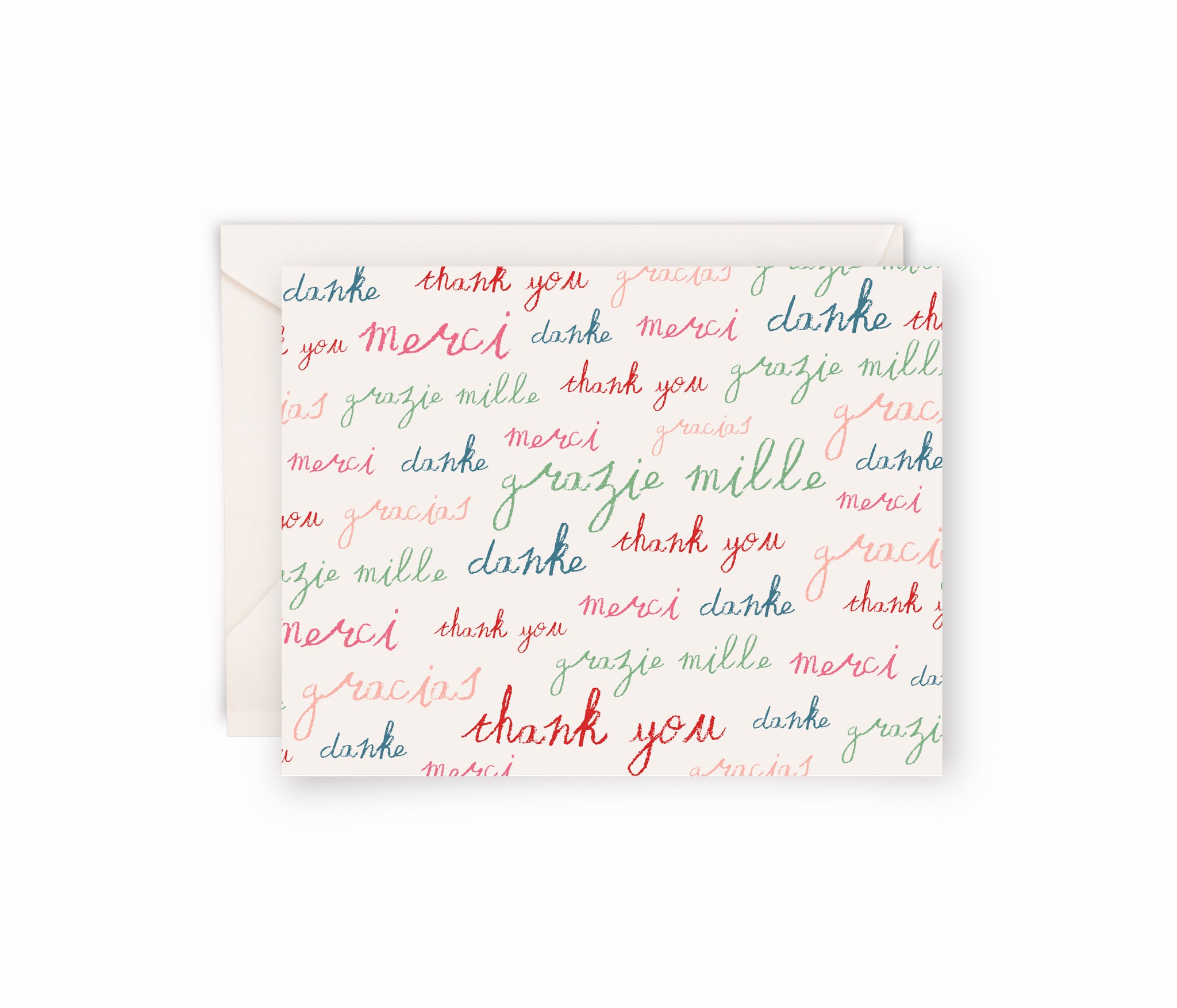 Express your thanks with these colorful notecards, which feature expressions of thanks in 5 different languages.
